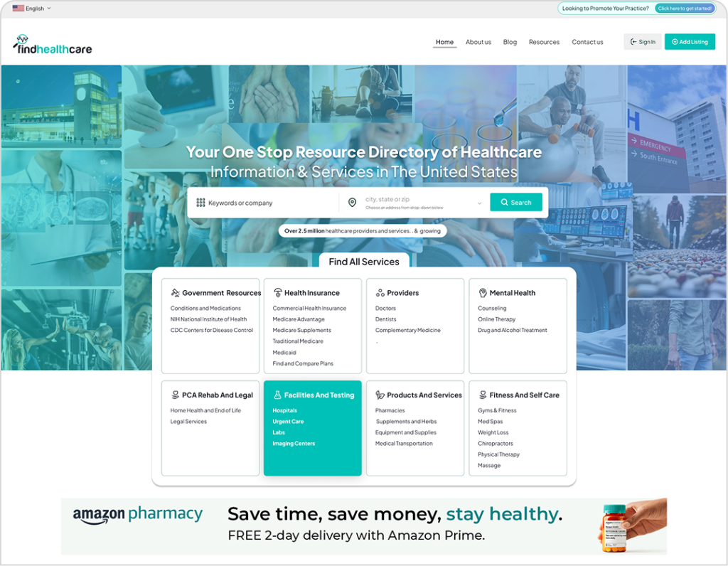 FindHealthCareUSA is one of the largest healthcare providers directory with over 2.7 million listings from all health and medical categories.