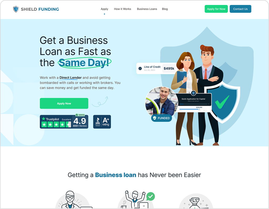 Shield Funding is one of the Top 10% same-day business loan provider in the nation.